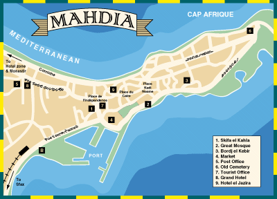 Город сохранил облик древнего рыболовецкого порта, с деревянными постройками, узенькими улочками и городской ратушей. Он и сейчас остается главным портом и здесь часто можно увидеть рыболовецкую шхуну и услышать крики рыбаков. Здесь очень красивая и длинная набережная, которая по пятницам превращается в шумный, многолюдный рынок. В Махдия можно полюбоваться местным колоритом, купить свежую рыбу и фрукты и что-то на память о пребывании на чудесном курорте. Отдохните в тени местного парка и загадайте желание на счастливой лавочке, что бы еще раз вернуться сюда и провести такой же восхитительный отпуск.